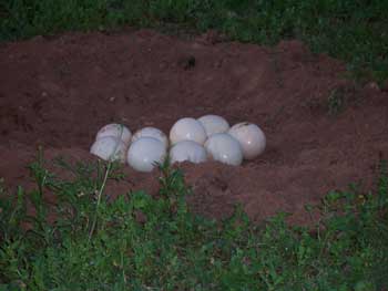 kann zwischen 15 und 30 Eier enthalten. Das Nest ist ein Loch, welches in